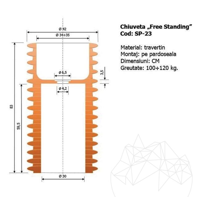 Bathroom sink design always follows a trend, as eccentric as this may seem. And what better example than a sink made from red travertine. This is a product associated with persistence, sustainability but most of all great finesse thanks to its glossy surface. The sink was made from a single slab, in spite of all those big round striations that look like overlapped circles, which might suggest something different. Due to its easily noticed height, this sink captivates instantly, regardless of the decorating style: rustic, classic, elegant, Mediterranean, etc. Areas of use include residential or public (coffee shops, bars, office buildings, hotels, etc.).