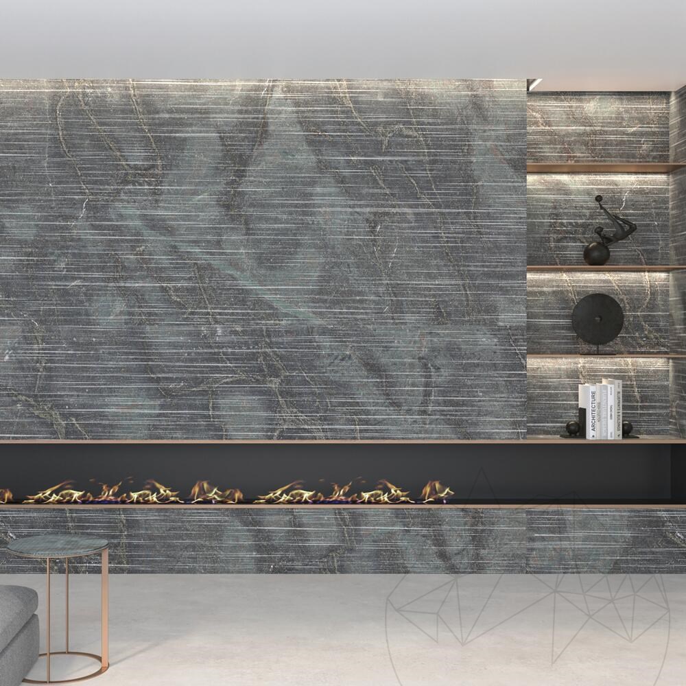The RAW Collection highlights the natural beauty of the stone, with each slab underlining its original texture and markings. The rough-hewn edges and irregular surfaces of Black Forest Lineal Design Slab 2 cm certify the raw power of nature and add a distinctive touch of authenticity to any space.
