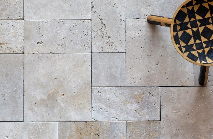 Travertine is an excellent choice for balcony cladding and urban garden landscaping due to its aesthetic appeal, durability, anti-slip properties, and ease of maintenance of this natural stone. In addition, its natural shades of white, beige, brown, and grey blend perfectly with the intense green of the plants, and the rich colors of the flowers.