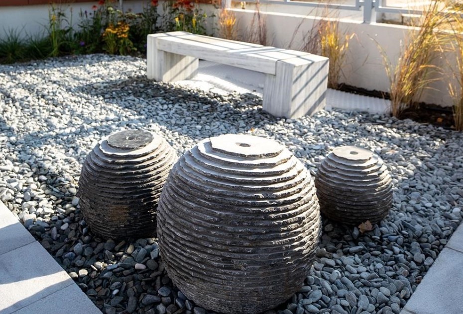 Natural stone outdoor decorations have a distinctive look and add style and personality to your urban garden. Anthracite balls or columns are just 2 examples of elements that can be used to decorate spaces. To create a harmonious and sophisticated design, use different green plants and flowers, as well as other materials such as wood and metal.