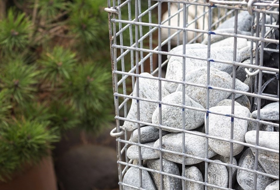 The green space can be enclosed with a decorative garden fence, such as a gabion fence. It is made of a strong metal structure with natural stone added to create an aesthetic and functional design. Wire mesh sizes will be selected based on the stone size, with many material and color options available.