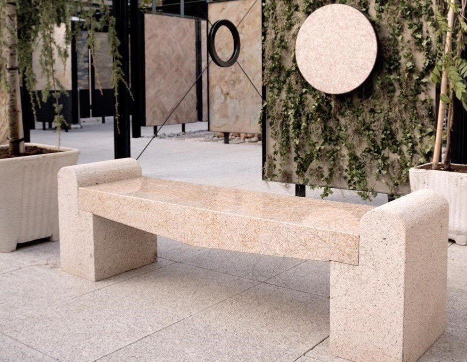 To enjoy a granite bench, it should be placed in a shady area of the urban garden: near trees, under a pergola, or in other places out of the intense sun. You can also place a fountain or pond nearby for an added relaxation vibe.