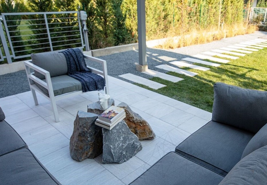 Natural stone coffee tables are an elegant and durable design element for urban garden design. You can opt for a piece of furniture with a regular shape, suitable for a minimalist style, or an irregular one, which adds authenticity and becomes the focal point of the green space.