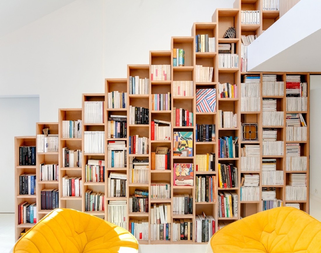 Another great idea is the combination of shelves with many colors, particularly for hallway and open space living rooms. As a result, you can create small bookcases that start in the hallway and end in the living room, decorating all the corners.