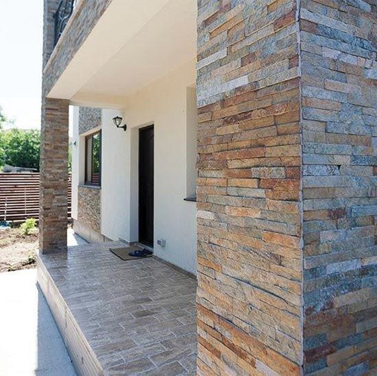 The installing is extremely easy and fast because the panels are simply joined together. The panels are made out of little pieces of stone glued with a special adhesive which is highly resistant in any type of conditions. For this reason, they can be successfully be used in both interior and exterior arrangements.