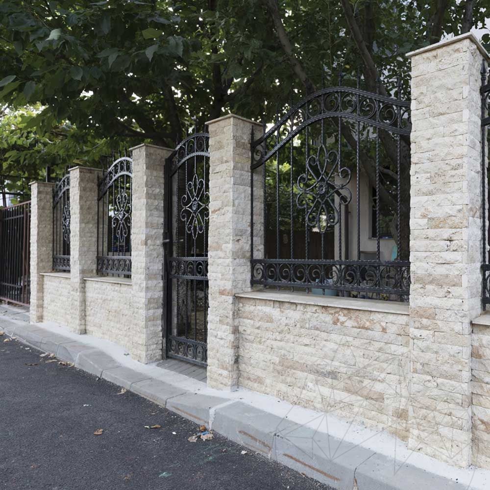 Decorative natural stone such as Classic splitface travertine can be used for both interior and exterior claddings, resulting in customized fences, facades, interior walls as well as public spaces like pubs, restaurants and even clothing or jewelry stores. It is extremely adaptable to any decoration and very easy to apply. This natural stone is always in stock. You can order it right now! We deliver internationally, no matter the quantity.