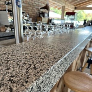 Tropic Brown Polished Granite special pieces, available in countertops, steps, and window sills with a thickness of 1.8 cm, are the perfect choice to bring elegance and refinement to your space.