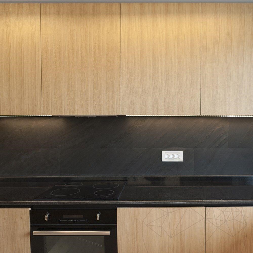 The SKIN-Black Line 265 x 125 cm Flexible slate veneer brings elegance and refinement in any interior or exterior setting. Now with a reduced costs and assembly time! This product, made using German technology, has a high quality and can be overlaid on almost any surface and material, giving them a natural, stylish and unique look. From cladding walls of kitchens or living rooms, restaurants and wineries, to saunas, bathrooms, cellars or terraces etc., this flexible slate veneer will impress anywhere. The same high end appeareance will be suggested when used for exterior claddings of buildings: offices, shopping centers, homes etc. Even furniture items can be cladded using such a product: cabinets, doors, tables etc. It is easy to see why, with a thickness of only 1,5-3 mm (1-2 kg / sqm), the flexible slate is also called the "stone wallpaper".