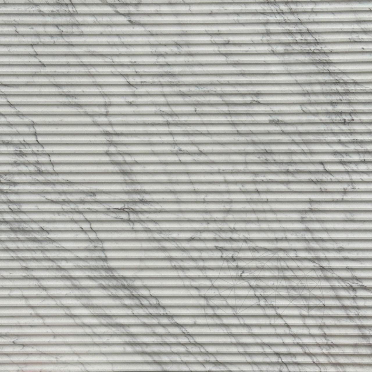 Volakas Edge Fluted Marble blends the timeless beauty of Greek marble with a modern, textured finish. Its pure white tones, crossed by delicate grey-lilac veins, create a striking visual effect, while the edge processing adds depth and dynamism to any design project.