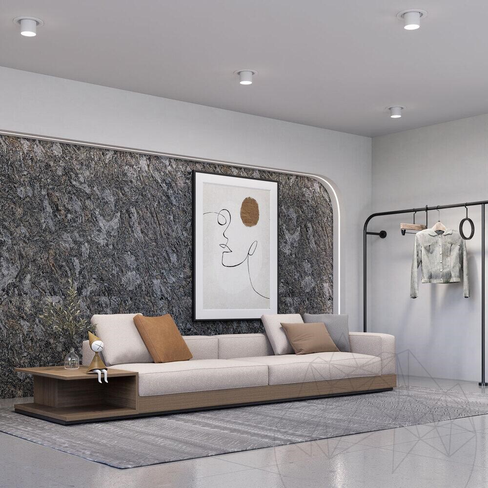The RAW Collection highlights the natural beauty of the stone, with each slab underlining its original texture and markings. The rough-hewn edges and irregular surfaces of Kosmus Silver Super Rock Design Slab 2 cm certify the raw power of nature and add a distinctive touch of authenticity to any space.