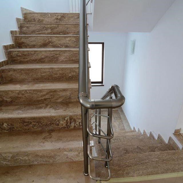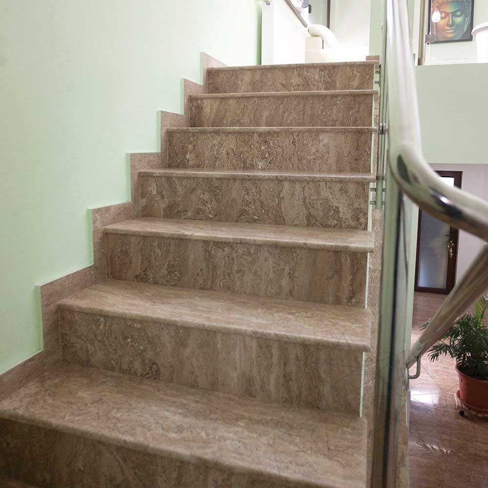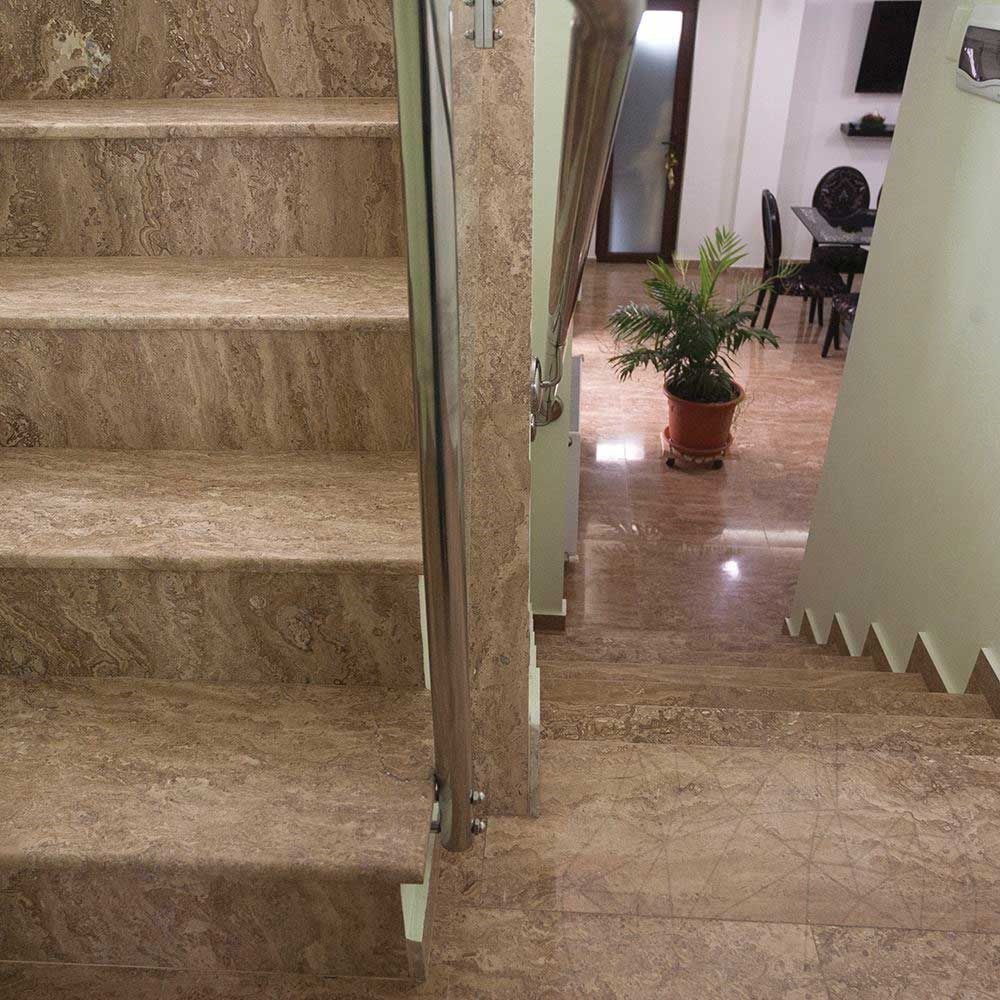 The steps of interior and exterior stairs can benefit from a unique and distinctive presence with an archaic feeling by using the Latte polished travertine. Its one of a kind look doubled by the well-known resistance of this material satisfy even the most sophisticated tastes in terms of interior design. You can use this travertine not only for stairs and risers, but also for exterior and interior claddings, for kitchen and bathroom countertops, fireplaces or any other type of special pieces. The edges of all these products can be processed according to your wishes (bullnose, half bullnose, doubled, cutout etc.).