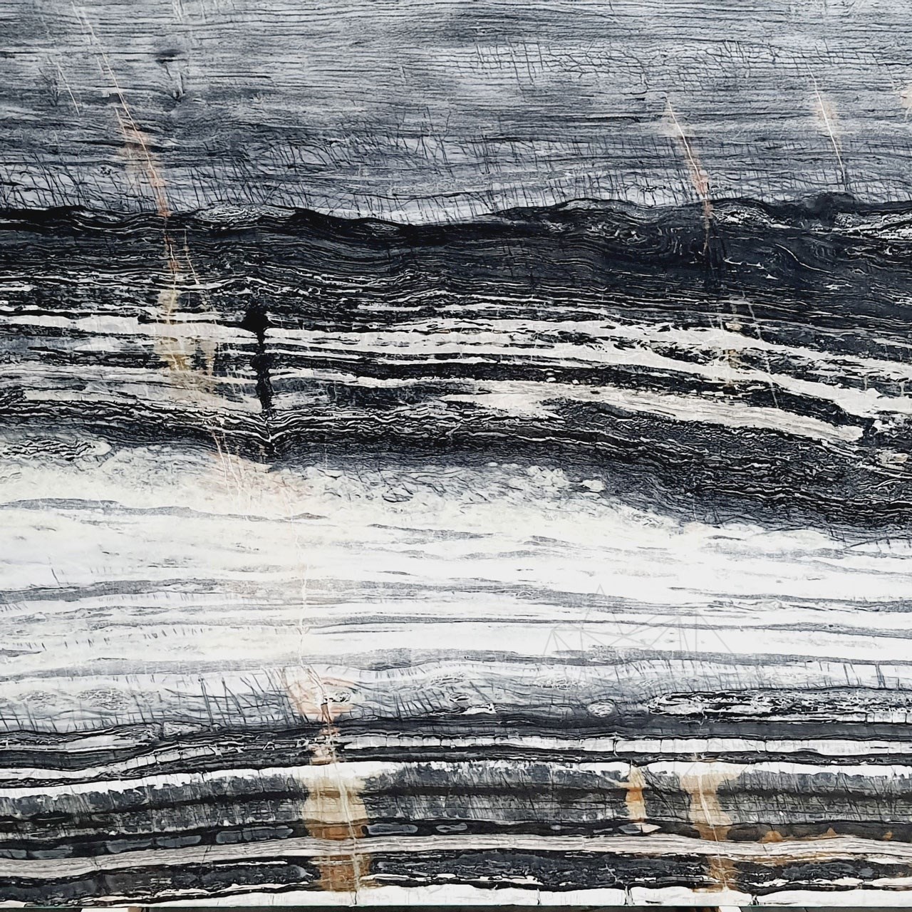 Azur Black Marble Slab is a stunning natural stone featuring a dark grey base with striking black, grey, and white veins. This elegant marble offers a refined and balanced visual composition, blending timeless luxury with contemporary depth, perfect for sophisticated interiors.