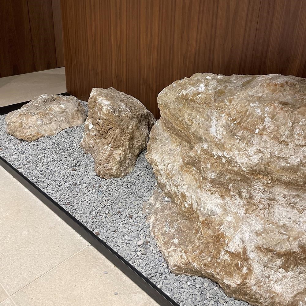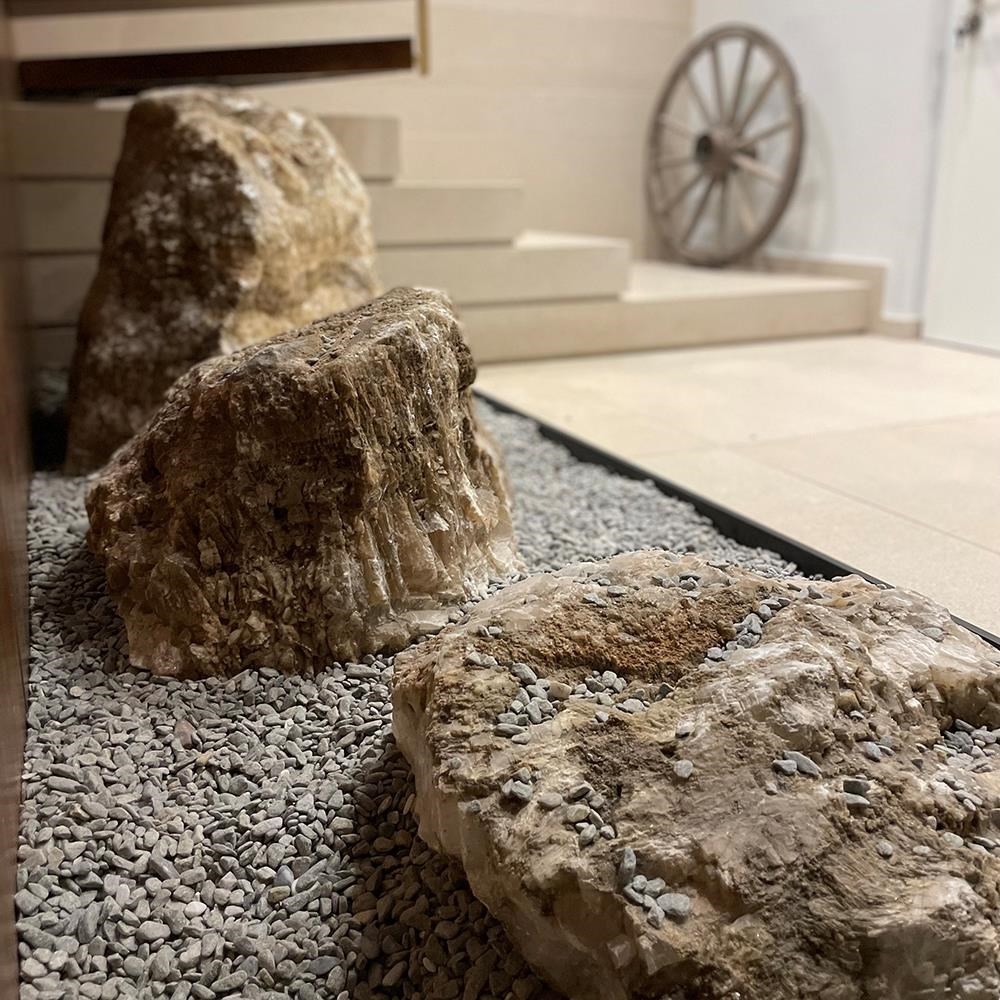 Monolith Wave has the shape of a smaller rock, conveying the image of a long gone era. Landscaping with Monolith Wave Onyx seems like a symbol of quiet meadows at the base of mountains. The color of this material reminds of sand and its compact and durable mass transmits the strength of past millennia.
