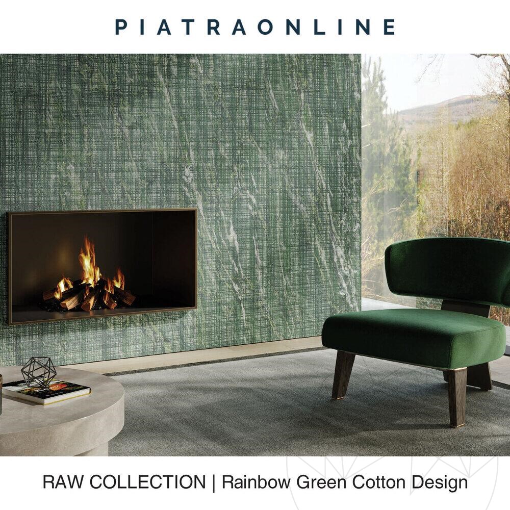 The RAW Collection highlights the natural beauty of the stone, with each slab underlining its original texture and markings. The rough-hewn edges and irregular surfaces of Rainbow Green Cotton Design Slab 1 cm certify the raw power of nature and add a distinctive touch of authenticity to any space.