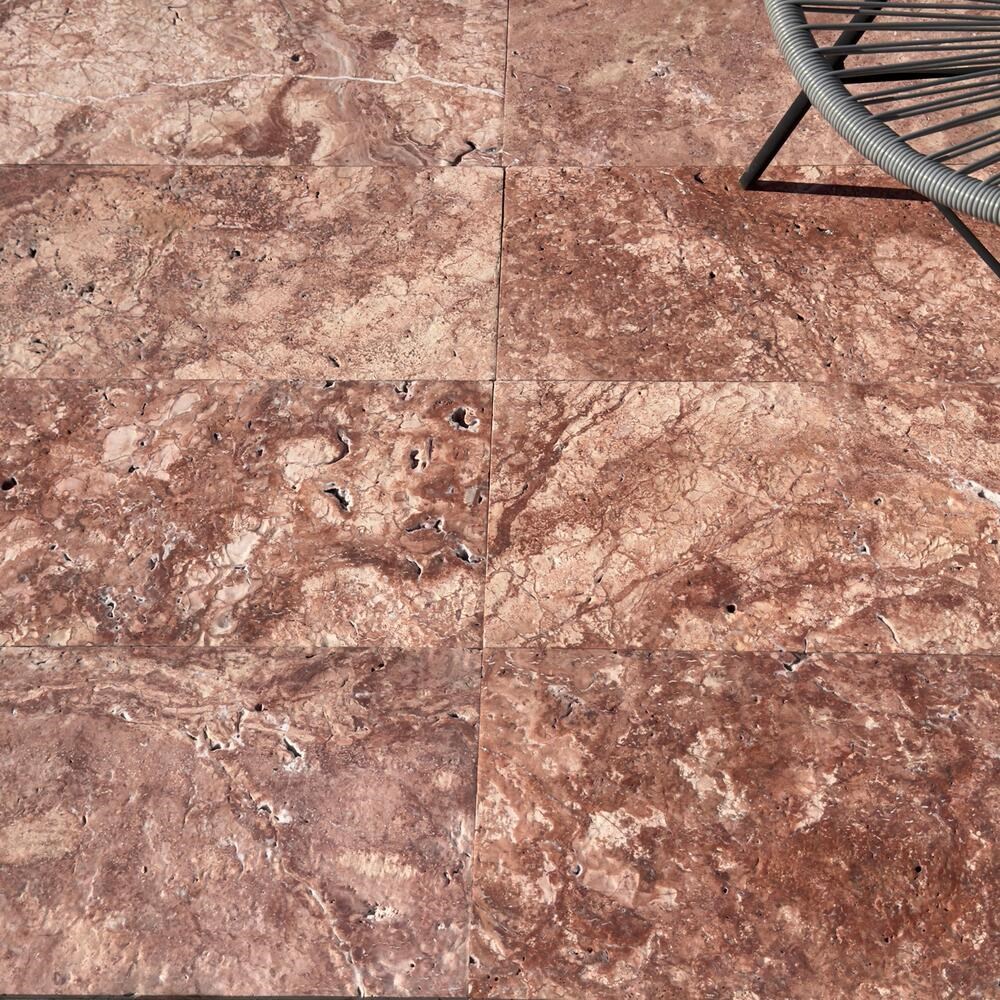 Red OpiumTravertine Tiles with brushed finish have 61 x 30.5 x 1.2 cm size.