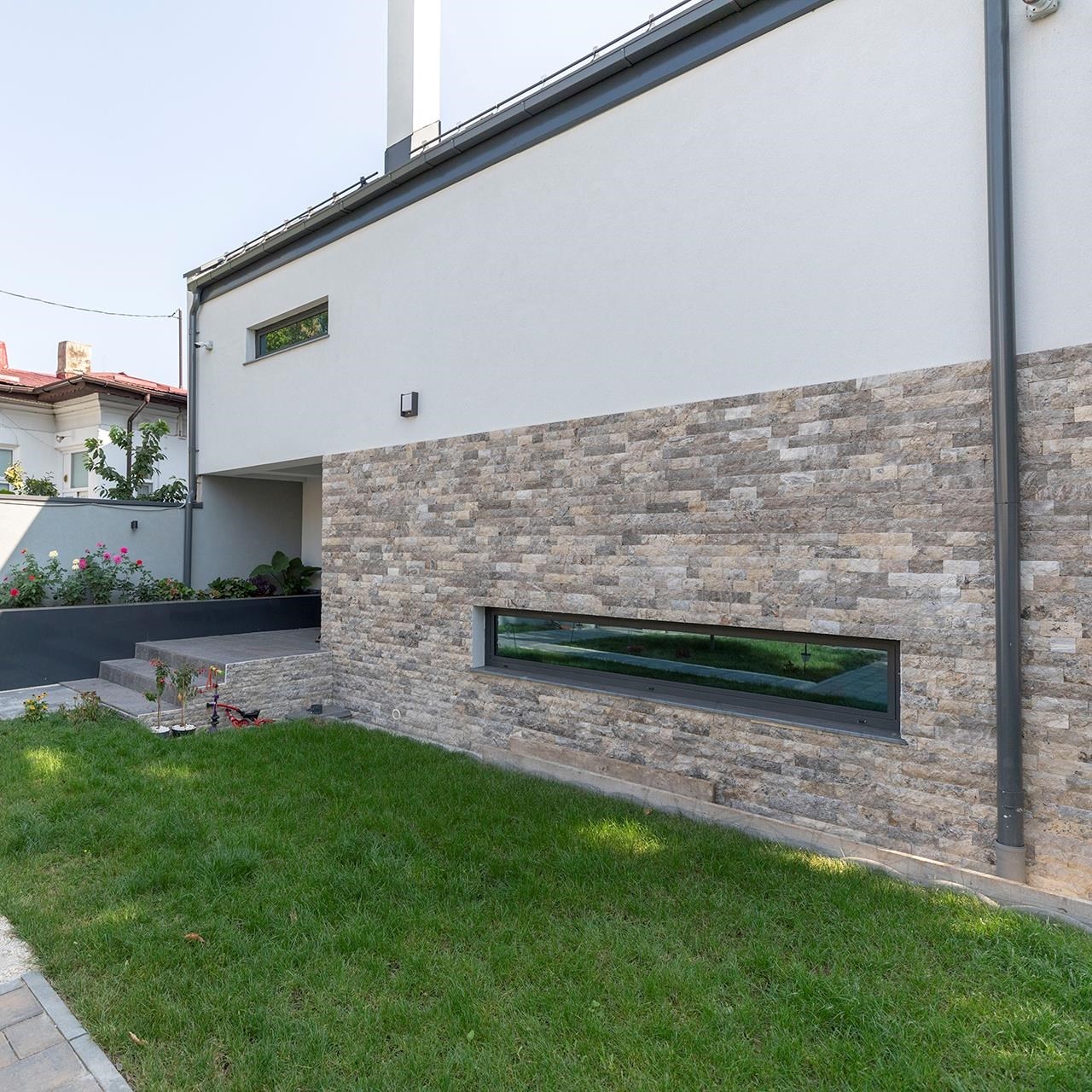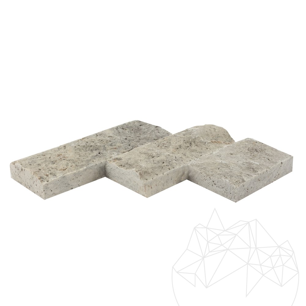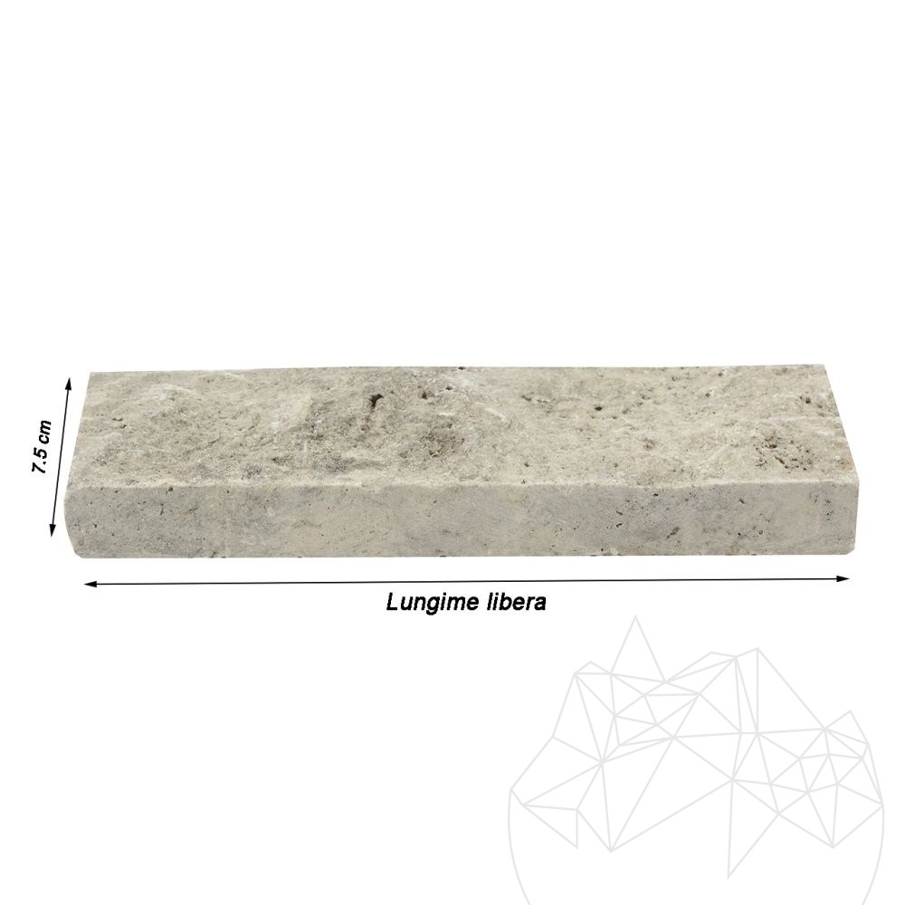 NEW! Silver splitface travertine cut at a size of 7.5 cm. Natural stone claddings have the power to completely change the ambience, depending on the predominant color of the stone. The Silver splitface travertine is a product define by color consistency, even in the case of large surfaces. The width available for this material are 7.5 cm with a thickness of 2.2 cm and loose lengths. These differences in terms of lengths provide a certain beauty to the overall appearance.