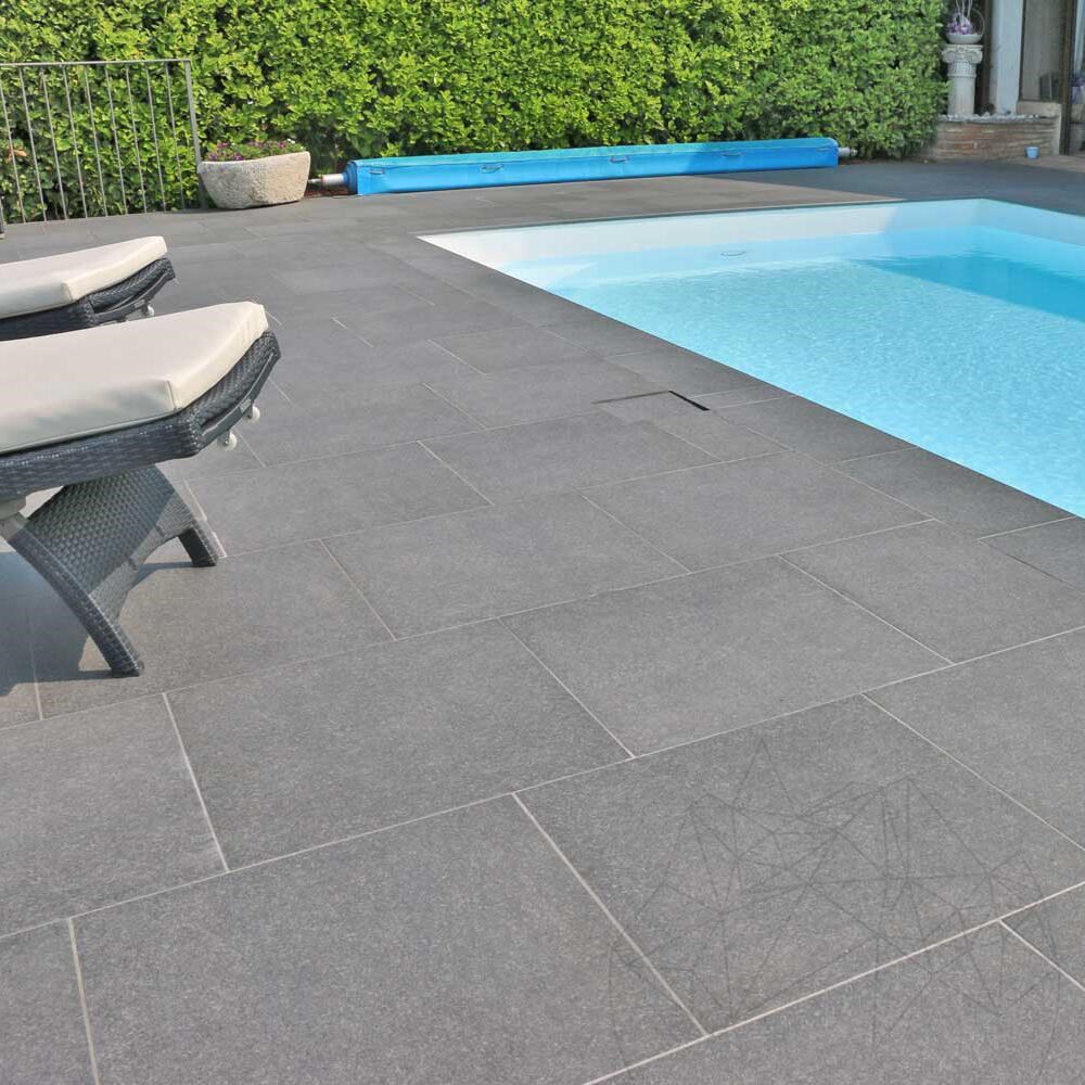 The Colosseo Basalt Grau variant replicates the renowned Basalto dell’Etna from Italy, celebrated worldwide for its aesthetic appeal. The stone's R11 non-slip surface finish ensures safety in wet conditions, making it ideal for areas prone to moisture.