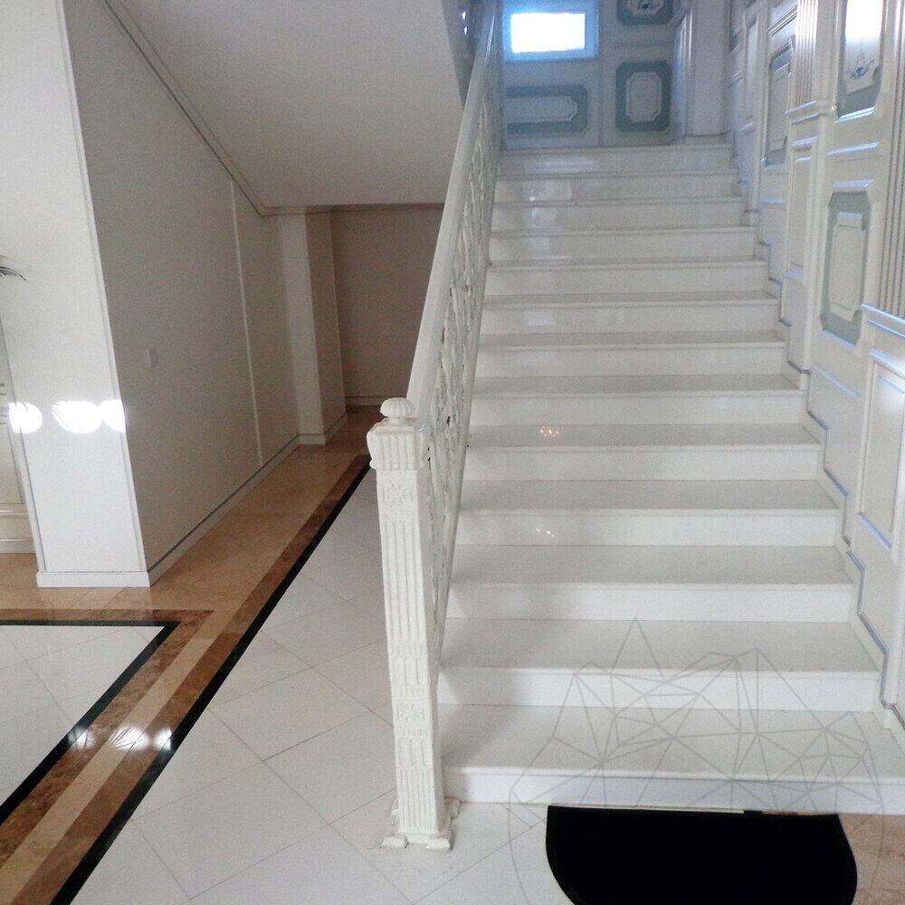 This marble is suitable for both traditional and modern styles, creating a bright and airy space. It is recommended that these special pieces are used in bathroom and kitchen cladding, as well as for striking contrasts in combination with black marble tiles. Outside these spaces, we can easily find it in living rooms, hallways etc.