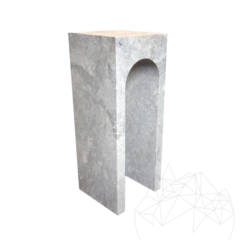 The Archy Small Console in Tundra Grey Marble is a piece of furniture that stands out for its elegant and modern design. Crafted from high quality Tundra Grey marble, this console adds sophistication to any space. Exquisite shades of gray, along with the marble's unique natural veining, give this piece a sophisticated and contemporary look, perfect for interiors that want to combine minimalist style with understated luxury.