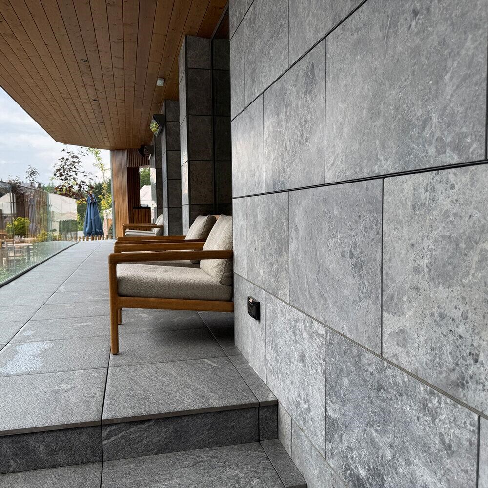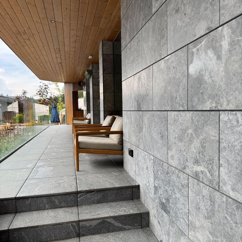 Discover Tundra Light marble with a matte (non-slip) finish, an extremely versatile natural stone suitable for interior cladding, exterior paving, and facades. Its generous dimensions of 61 x 40.6 cm and a thickness of 3 cm make it ideal for both indoor and outdoor use. It can be used for horizontal and vertical cladding, perfect for exterior pavements, facades, or even for ventilated systems or direct gluing with adhesive. It is also suitable for use at swimming pools, pedestrian walkways, and vehicular traffic. Installation is simple and fast, and can be done for both horizontal and vertical cladding. With the help of a suitable adhesive (Weber Marmo Plus / Weber Porcelain for natural stone), Tundra Light marble can be securely fixed on various surfaces, providing long-term resistance and durability.