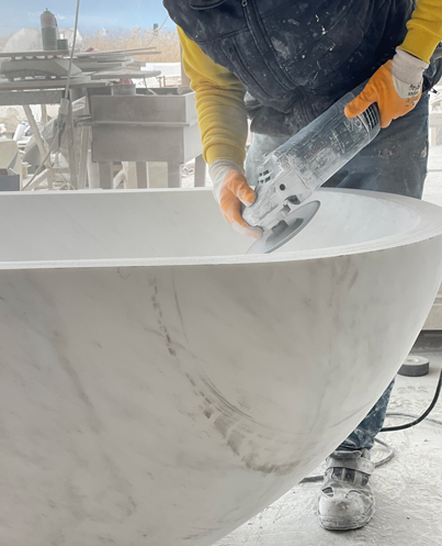 Delicately sculpted sinks and washbasins. Decorative mirrors and organic-shaped pieces. Bold reception desks for hotels and wellness centers. Furniture for cocktail bars or private dressing rooms. Coffee tables with character. Fireplaces that anchor an entire room.